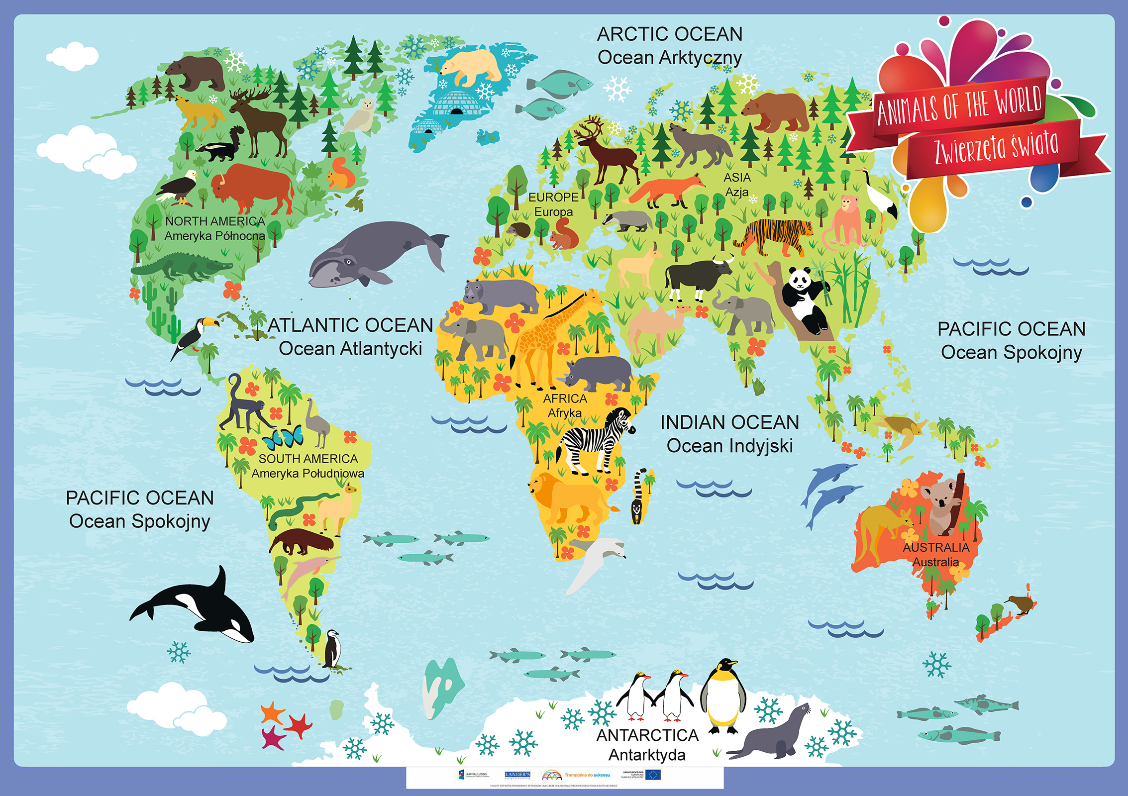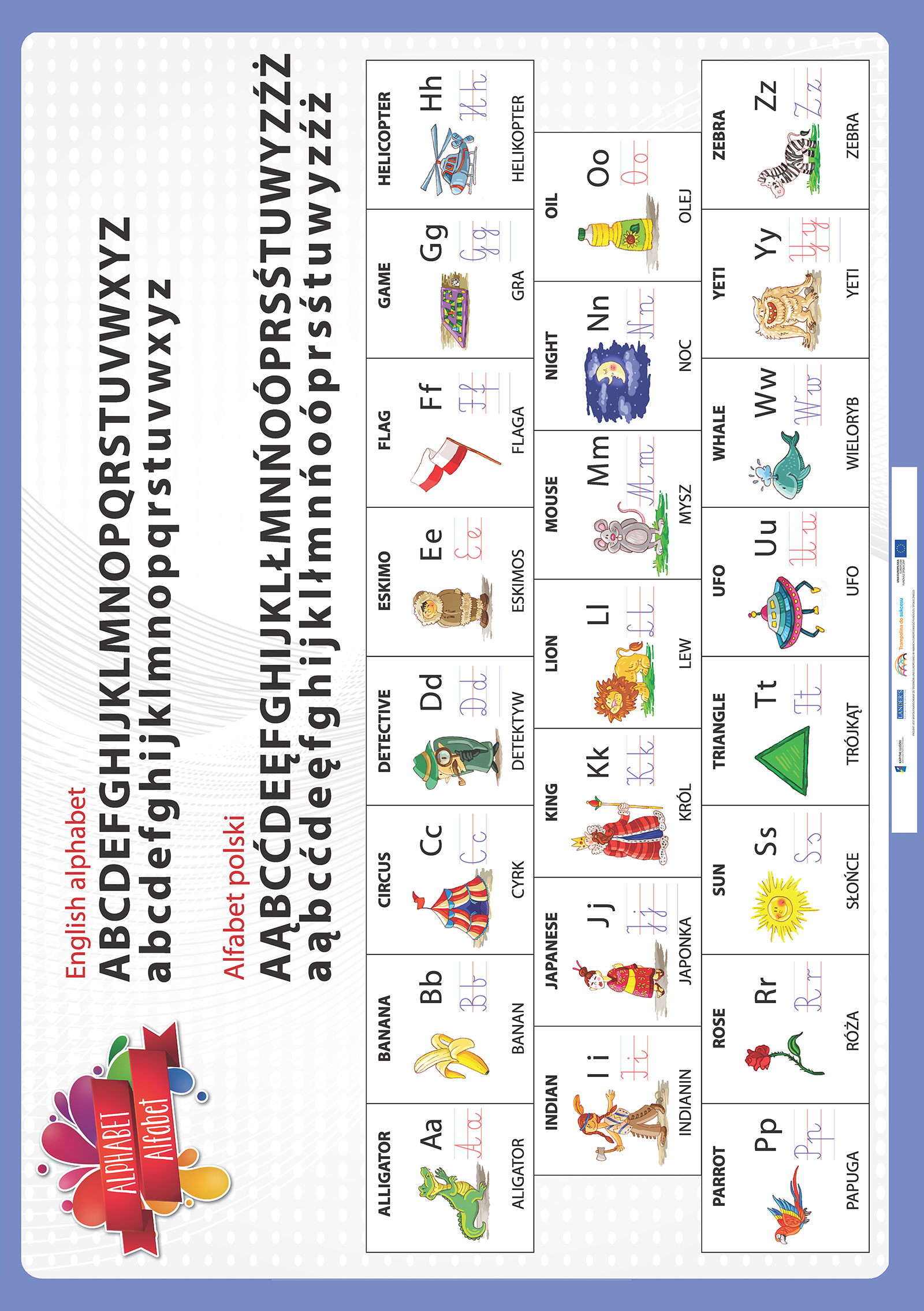 Opis Niniejszy zestaw zawiera 50 plansz edukacyjnych do zajęć lekcyjnych z zakresu języka angielskiego oraz edukacji wczesnoszkolnej dla uczniów klas 1-3 szkoły podstawowej do programu edukacji wczesnoszkolnej „Trampolina do sukcesu”. Tematyka plansz jest jest uniwersalna... Niniejszy zestaw zawiera 50 plansz edukacyjnych do zajęć lekcyjnych z zakresu języka angielskiego oraz edukacji wczesnoszkolnej dla uczniów klas 1-3 szkoły podstawowej do programu edukacji wczesnoszkolnej „Trampolina do sukcesu”. Tematyka plansz jest jest uniwersalna dlatego zasób ten może być wykorzystany w każdej klasie realizującej program edukacji wczesnoszkolnej zgodny podstawą programową. Program „Trampolina do sukcesu” integruje treści nauczania wczesnoszkolnego z treściami zajęć j. angielskiego, dlatego każda plansza opracowana jest w dwóch wersjach językowych tj. angielskiej i polskiej. Wszystkie plansze wraz z wszystkimi scenariuszami lekcji oraz elementami obudowy dydaktycznej dostępne również w aplikacji komputerowej dla nauczycieli "Trampolina do sukcesu". Aplikacja dostępna jest bezpłatnie na stronie www.trampolinadosukcesu.pl