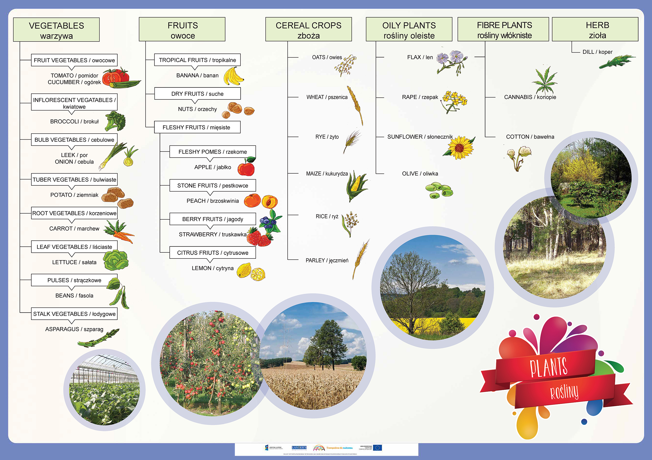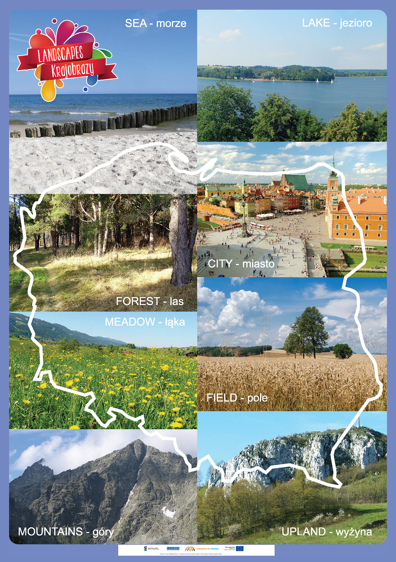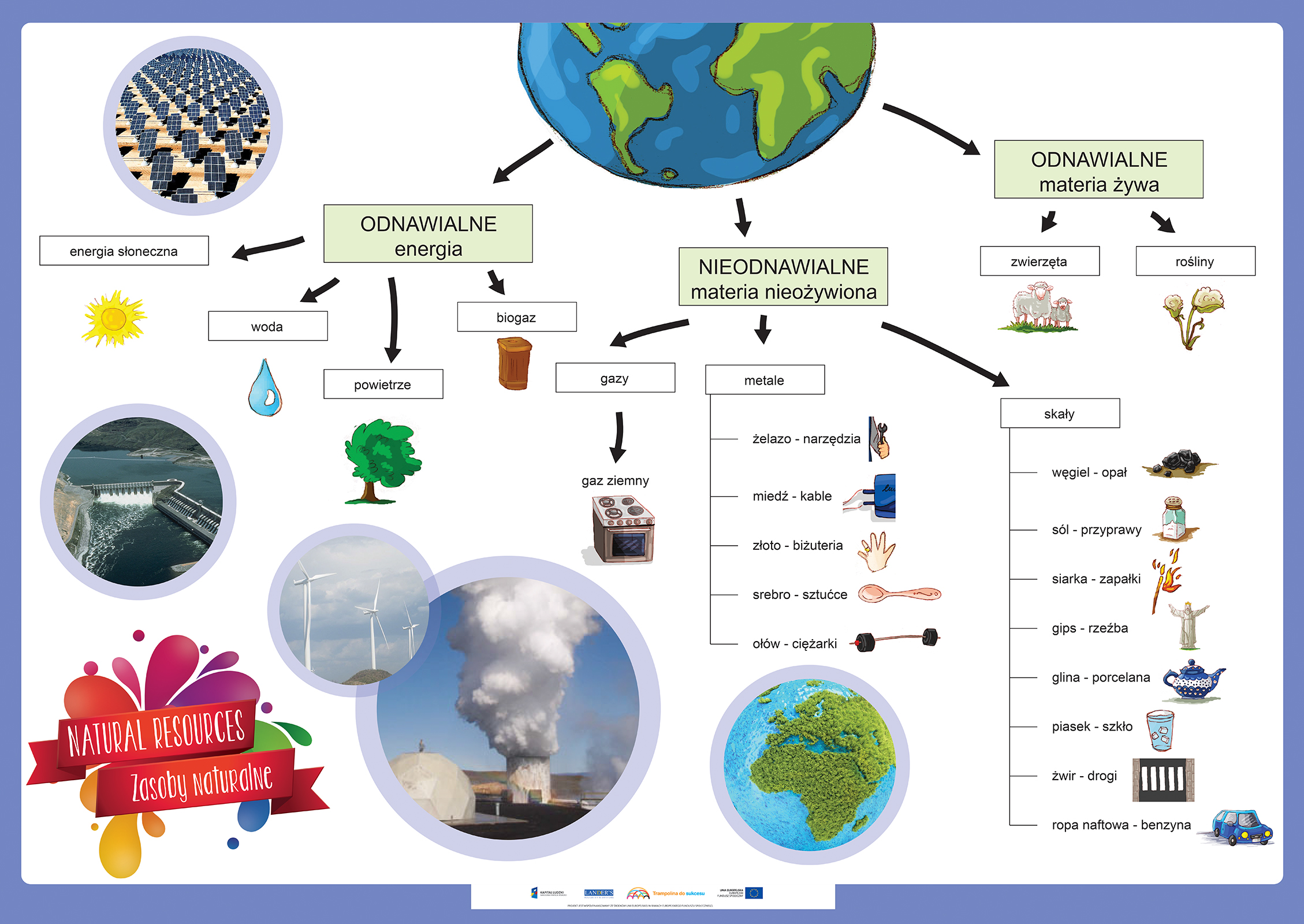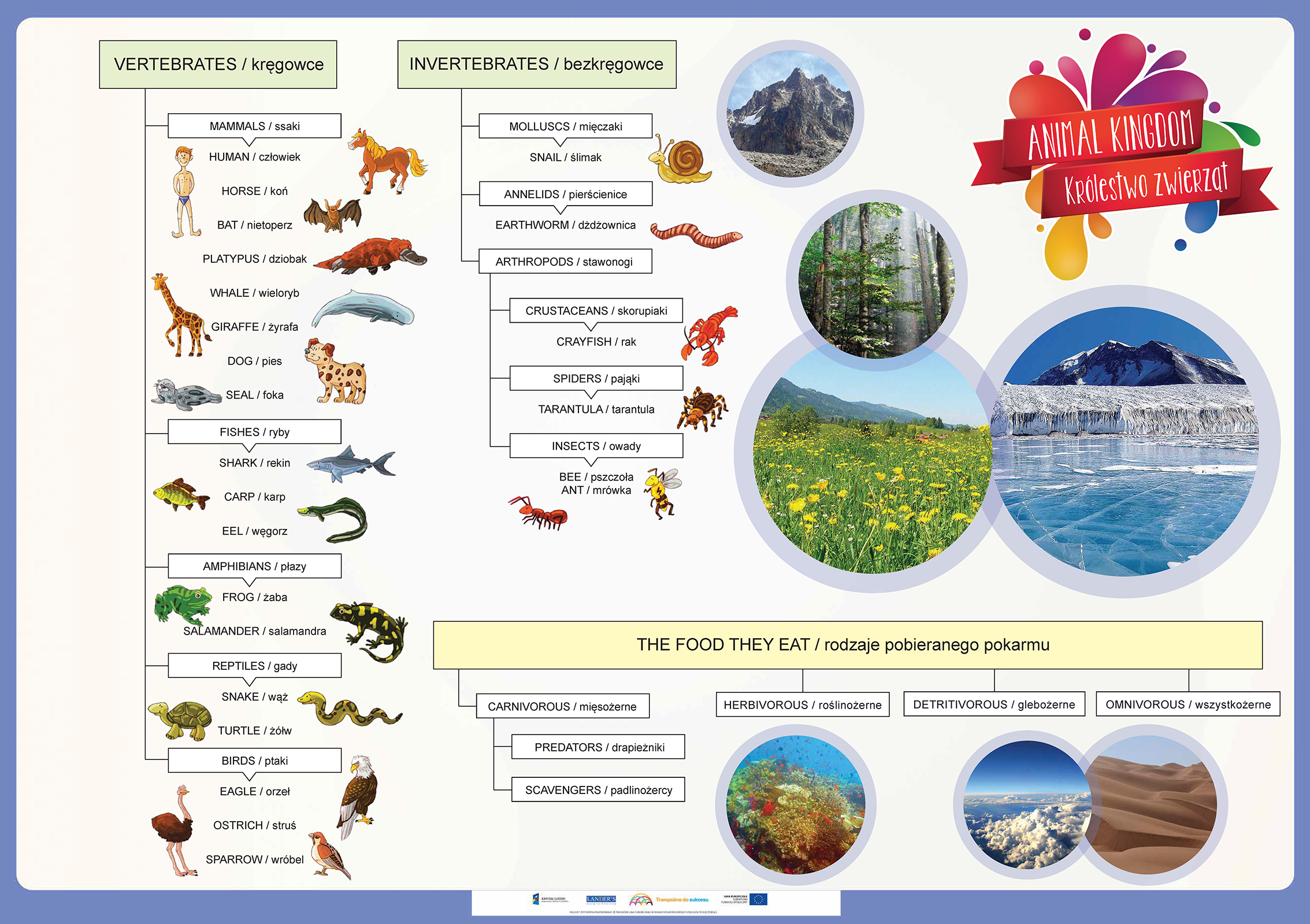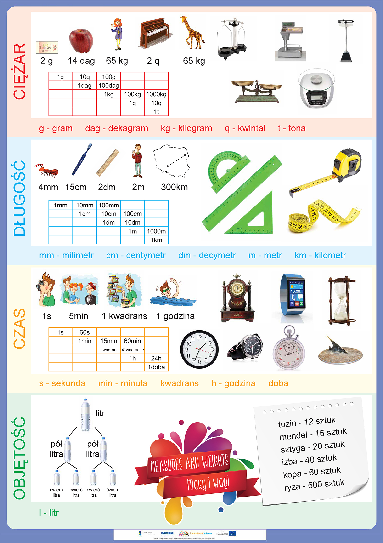 Opis Niniejszy zestaw zawiera 50 plansz edukacyjnych do zajęć lekcyjnych z zakresu języka angielskiego oraz edukacji wczesnoszkolnej dla uczniów klas 1-3 szkoły podstawowej do programu edukacji wczesnoszkolnej „Trampolina do sukcesu”. Tematyka plansz jest jest uniwersalna... Niniejszy zestaw zawiera 50 plansz edukacyjnych do zajęć lekcyjnych z zakresu języka angielskiego oraz edukacji wczesnoszkolnej dla uczniów klas 1-3 szkoły podstawowej do programu edukacji wczesnoszkolnej „Trampolina do sukcesu”. Tematyka plansz jest jest uniwersalna dlatego zasób ten może być wykorzystany w każdej klasie realizującej program edukacji wczesnoszkolnej zgodny podstawą programową. Program „Trampolina do sukcesu” integruje treści nauczania wczesnoszkolnego z treściami zajęć j. angielskiego, dlatego każda plansza opracowana jest w dwóch wersjach językowych tj. angielskiej i polskiej. Wszystkie plansze wraz z wszystkimi scenariuszami lekcji oraz elementami obudowy dydaktycznej dostępne również w aplikacji komputerowej dla nauczycieli "Trampolina do sukcesu". Aplikacja dostępna jest bezpłatnie na stronie www.trampolinadosukcesu.pl