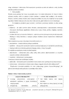 Tabela 2. Zalety i wady metody projektów