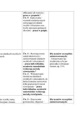na ułamkach zwykłych Ćw. 1 – Rozwiązywanie Dla uczniów szczególnie