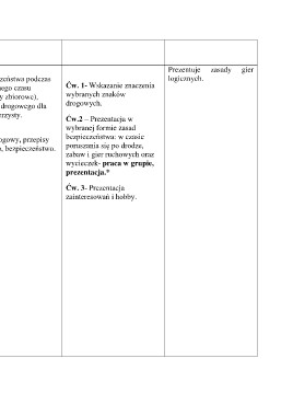 zeństwa podczas Ćw. 1- Wskazanie znaczenia Prezentuje zasady gier
